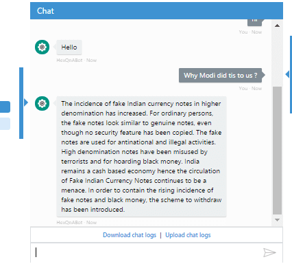 Once done with adding question set with any available method or combination of the same, lets test it how it will respond to given questions.