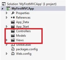 Visual Studio creates the following folders under MVC project. Let us see the contents generated by the Visual Studio in the application.