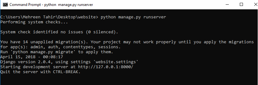 We need a webserver to run our project but no worries. One of the coolest things about Django is that it comes with a pre-configured, lightweight web server for developing and testing applications. Django also supports other famous web server but for the sake of simplicity, we’ll be using the built-in server.