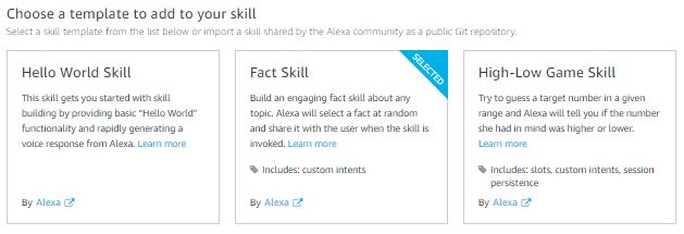 We can also choose a method or a template to host the skill’s backend code inside a lambda function.