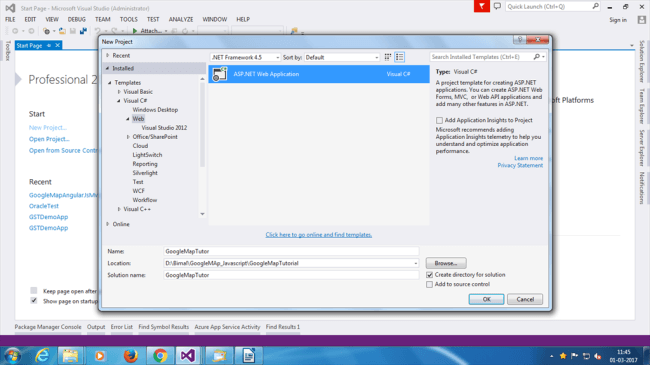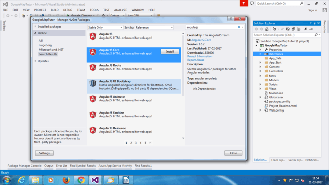 Add “index.js” and “google-map-dir.js” files into Scripts>app and Scripts>app>Directives(create Directives folder, if it does not exist) folders respectively.