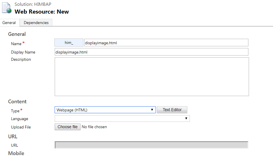 Now, we need to create an HTML web resource and use the above code under Text Editor.