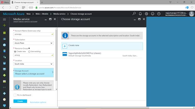 Storage accounts that we create in our Azure should be in the same region of the Media Services account.