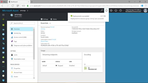 - About Microsoft Media Services Account.