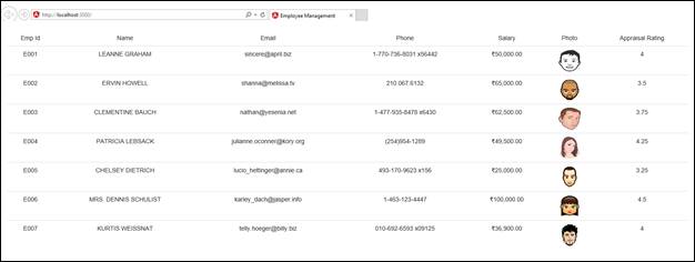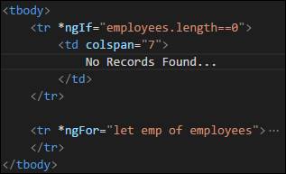 Now, we are done with our component; it’s time for us to define HTML markup for the same i.e. emp-list.component.html. Here, the code snippet is given for the same.