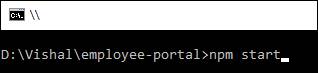 Now, we are in a position to run the Application and test how the  component loads. To run it, press “CTRL+SHIFT+C”. This command will open the command prompt. Type “npm start” on it.