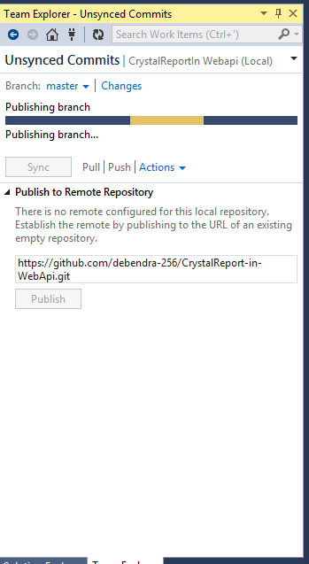 Now please provide your GitHub Repository Url you copied while creating Repository and Click Publish. It may ask your GitHub userId and password,
