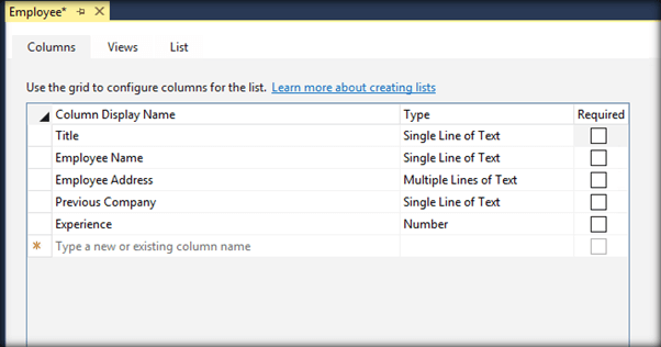 The ‘Employee’ list also has an instance object which contains the information that can be added to the list by default.