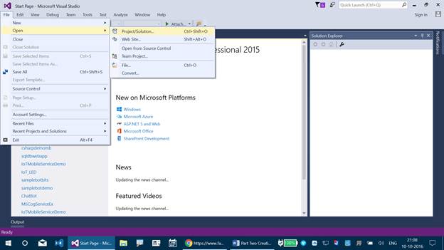 Run Visual Studio 2015 - File - Open - Project/Solution.