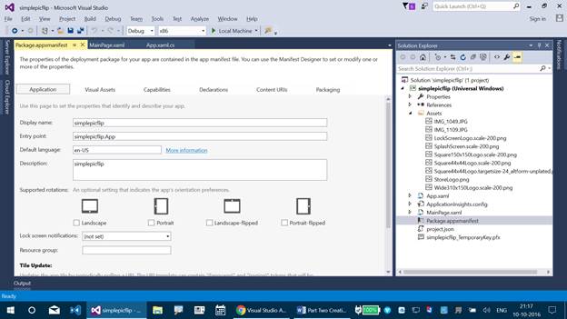 - This is a continuation of my previous article in which we were working on creating an UWP app. Please refer to my previous article, which will help you to create a very simple Picture FlipView UWP app before working on to this one.