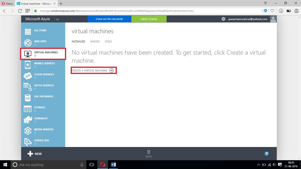 Once your Azure dashboard appears; click the virtual machine tab in that and click create a virtual machine.