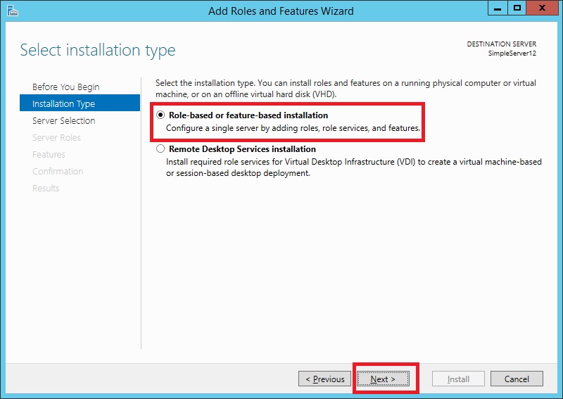 In the “Add roles and features wizard”, begin the installation by clicking next.