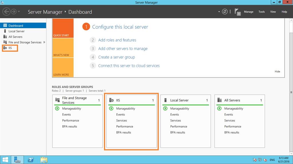 In the Server Manager dashboard, we will find the IIS Manager option.