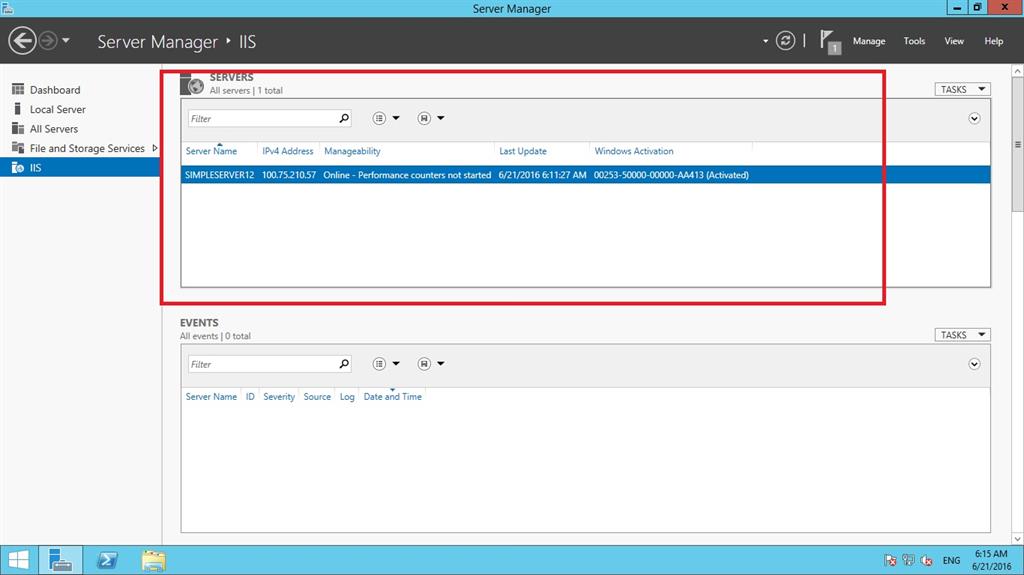 In IIS Server, we will find the Server name, IPv4 Address, Manageability etc.