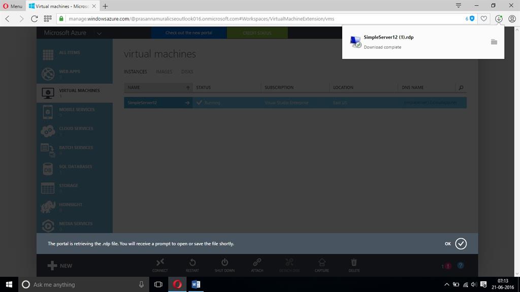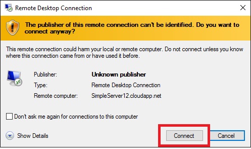 .rdp file is a downloadable from the portal. Open the remote desktop connection file by double clicking them.