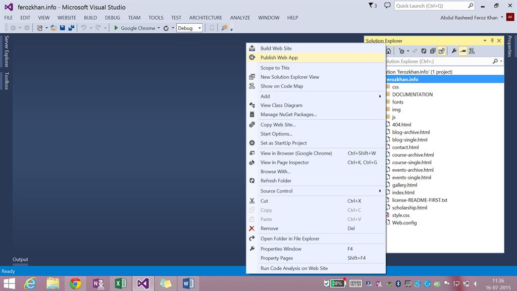 Step 3: After completing the website content go to the solution explorer and right click on the project solution name and move to Publish Web App,