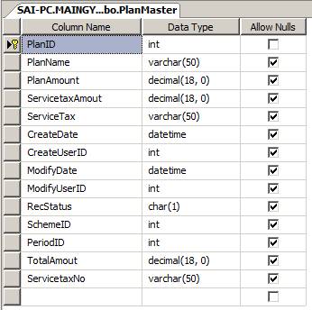 This table contains all plan names in it along with a Foreign key SchemeID.