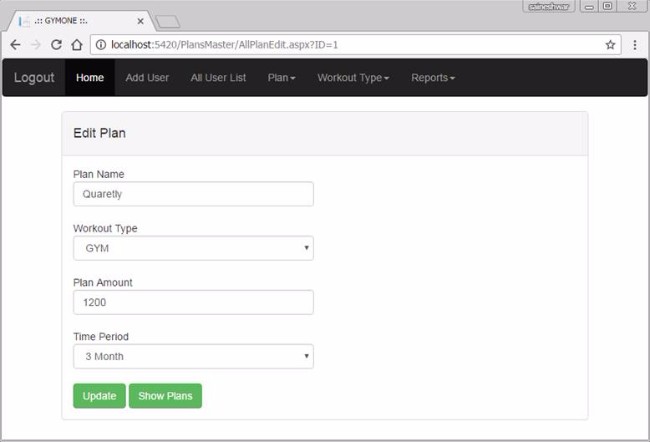 I have provided the entire GYM project to download with SQL Server Script that contains tables and stored procedures. Please read text file ReadMeBeforeStart.txt.