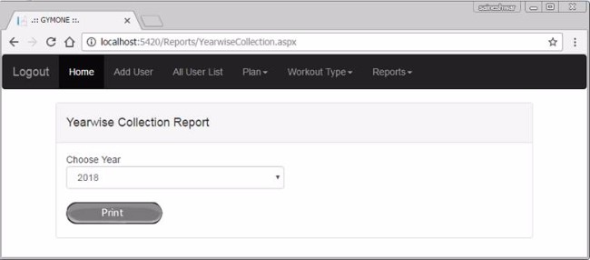 The second report is Yearwise Collection Report. In this report, we are going to display the fee collected in a particular year.