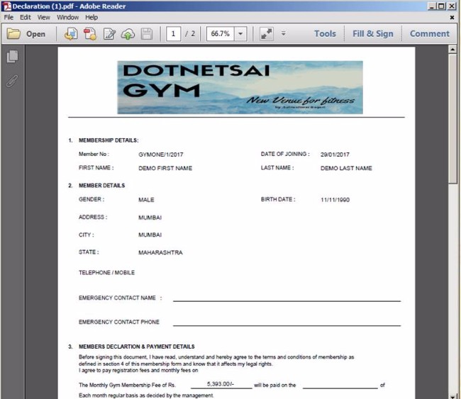 After registering, the member is given a receipt and declaration form. The receipt is signed by the system user and the declaration form is signed by the joinee. Along with this, the member is asked to provide legal document proof of address and photo identity. Now, the member can use gym facilities till his/her subscription is expired. After completion of this service, he needs to renew membership from System User for the next tenure(Quarterly, Half Yearly, Yearly) and pay a fee to System User for that period.