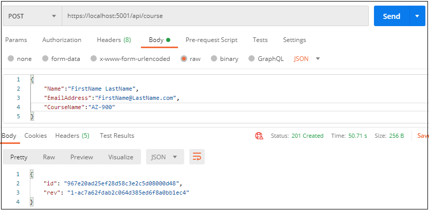 Step 7 - Test from Postman and validate against CouchDB