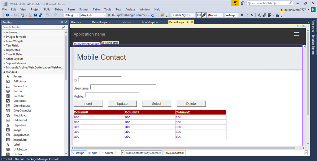 - var baseAddress = "http://localhost:2514/api/values/GetMobileInsert?Username=" + TextBox2.Text + "&Mobile=" + TextBox3.Text + "";