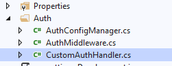 Create the "CustomAuthHandler" class. It is used to validate the JWT token against the "TokenValidationParameters".