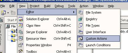 10. Next choose the View / Editor / Custom Actions menu item, this will bring up the custom action dialog menu as shown below.