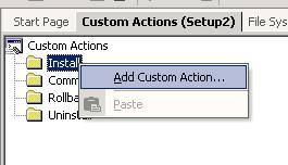 Highlight the install folder and right click on the folder and choose Add Custom Action as shown below.