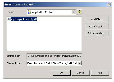 Navigate to the MySampleApp assembly we just made and add it to the msi project.