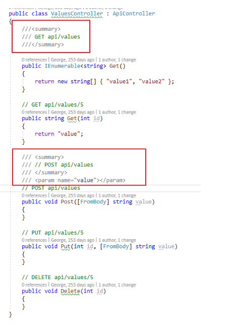 C - 2: Write Special Comments into Swagger notes .NET Core