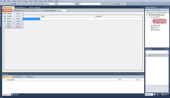 Resource.resx window has strings default. For exmple you can put any images in your form, resource.resx will be changed to images.