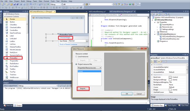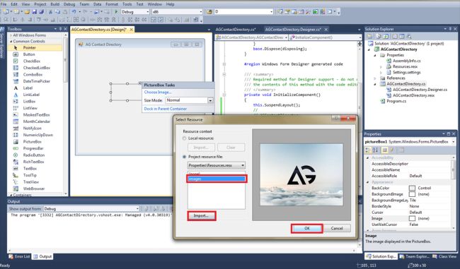 Choose the picture box, click the arrow and it will be displayed on PictureBox Task. Click the choose image option and import the image for your company logo or any image you want, click ok.