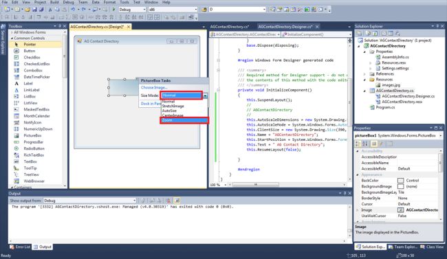 Run the program. The output will be displayed. When you click on the picture box, the contact directory will be displayed.