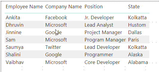 Here, in the Employee Information table, I have the name of the State. Now, I want to derive the name of the country from the Master table. In order to achieve this requirement, I need to search for the name of the state from the “Employee Information” table and look into the “Master table” which will retrieve the name of the country from it. For that, we will use the LOOKUPVALUE function in Power BI.