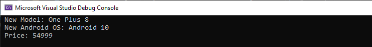 - Console.WriteLine($"{newPhone.GetModel()}\n {newPhone.GetAndroidOS()} \n Price: {newPhone.GetPrice()}");