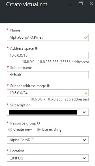 Click ok and ARM VNET i.e. AlphaCorpARMVnet will be provisioned for you.