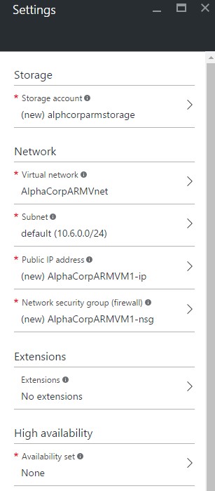Next, create Windows Server 2012 R2 Data Center VM with name ‘AlphaCorpARMVM1‘and keep it in newly created ARM VNET and resource group.
