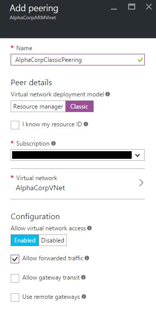 Give peering a suitable name and choose the option whether your target network is based on ASM or ARM mode of deployment, for us we know that it is ASM so we have selected classic mode.
