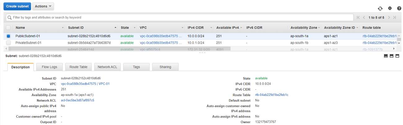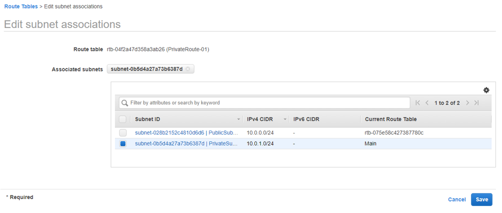 You can see both of the subnets shown in the list as of now these are only given names public and private, lets make them public and private subnets actually in the next steps