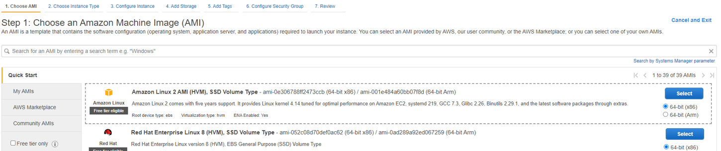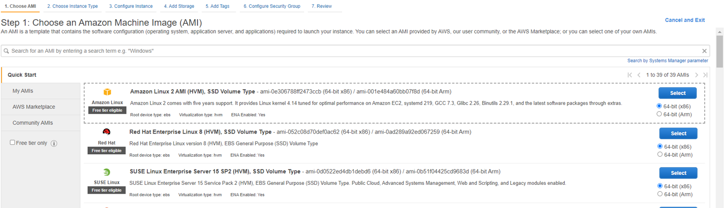 The first step is to choose the AMI means machine type whether you going to select Windows, Linux, or any other Machine.