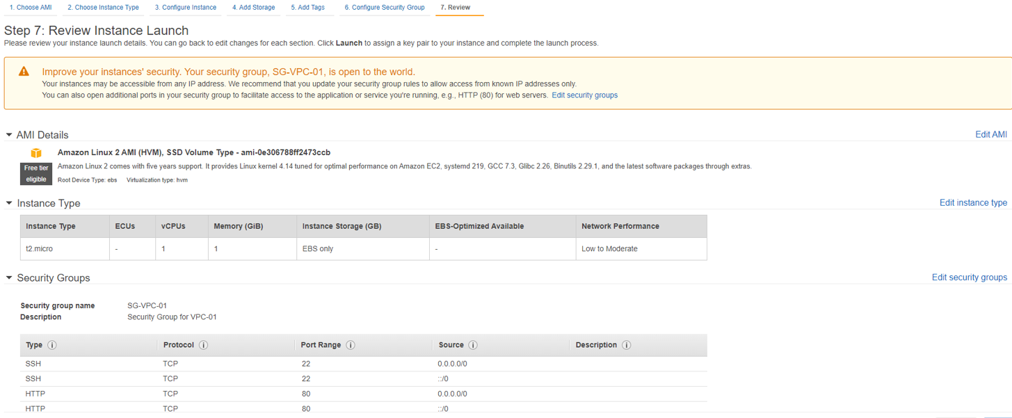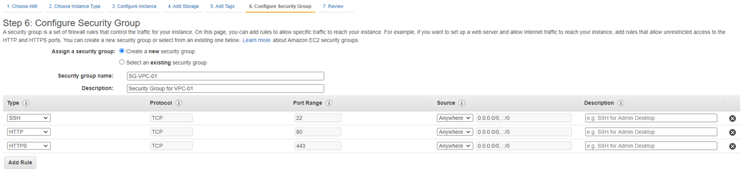In this step, you can define the security group, either you create the new one or select the existing security group and define the what kind of internet traffic reach your instance