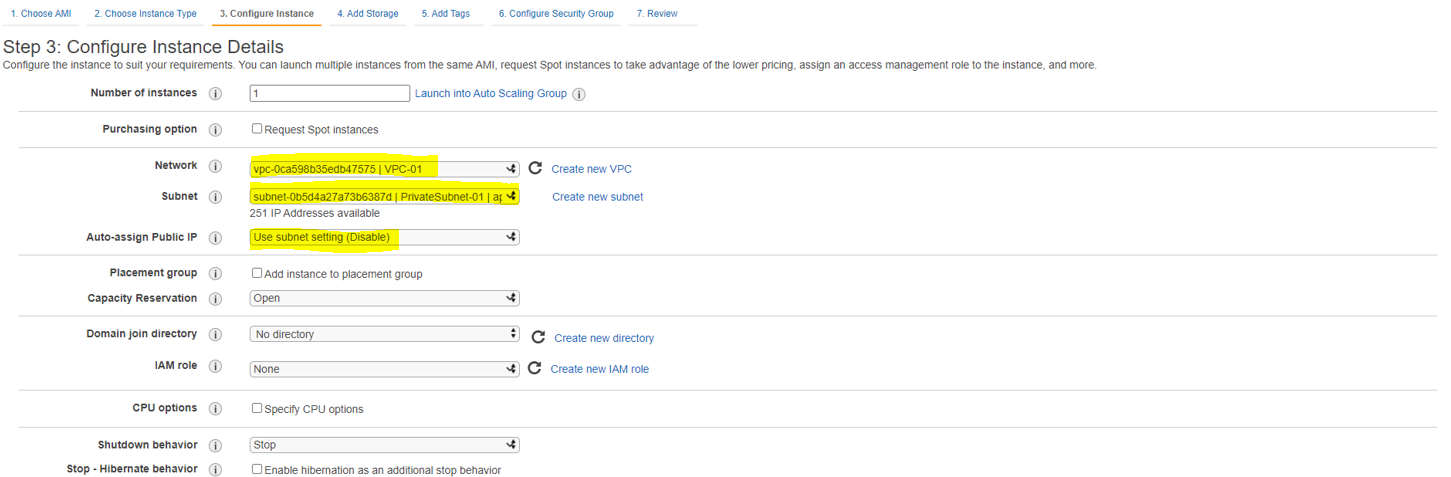 Be careful here while creating another instance you need to select the private subnet and enable the auto-assign public IP for the private instance.