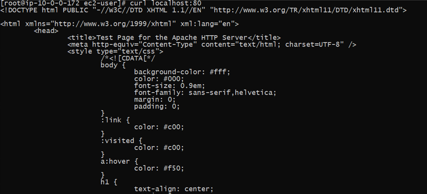 use the curl command to hit the request on the localhost or you can hit this directly on the browser with the public IP address of the instance.