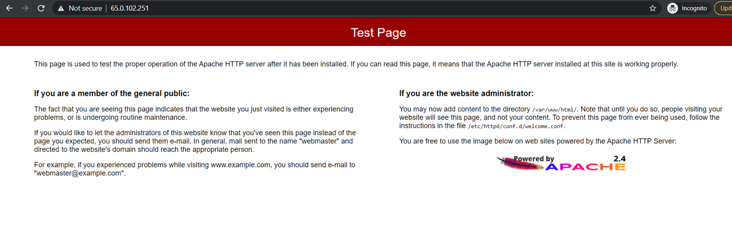 Access the apache server from the browser using the public IP of the EC2 instance.