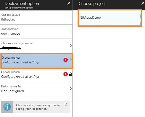 Choose the project and then select the repository. In my case, it is BitAppDemo.