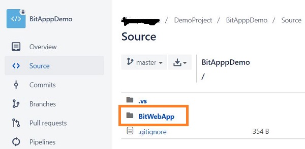 The below image shows my BitAppDemo repository in Bitbucket which contains a simple ASP.NET Web application source code.
