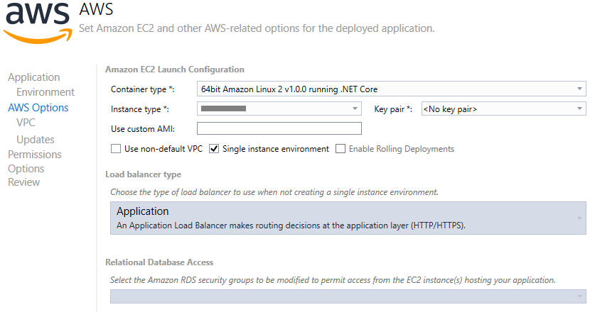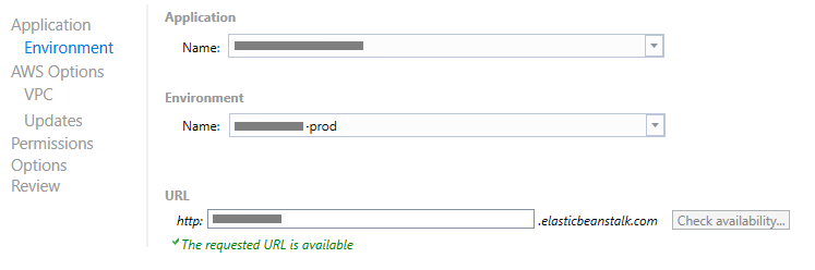 With this we'll have the AWS Elastic Beanstalk publishing wizard available, here we'll create a new application environment,