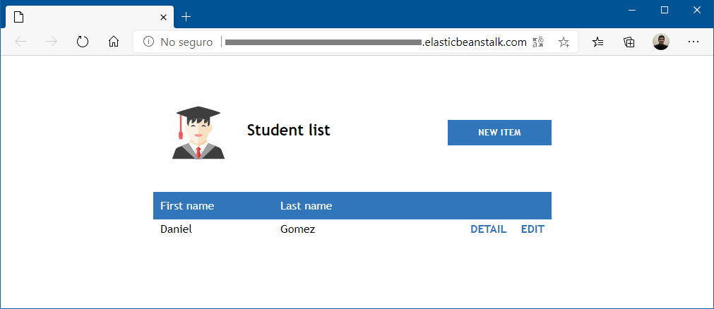 At the end of this process, almost transparent to us, we'll see our AWS-deployed application,