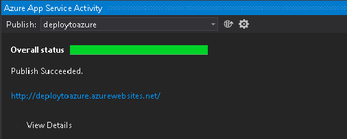 You can view the publish status along with files details in Azure App Service Activity window, a part of Visual Studio, along with the public Cloud URL.